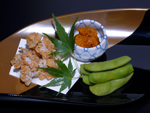 酒の友三種(枝豆・塩雲丹・ちりめん鱧)